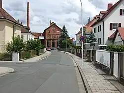 Dem Straßenverlauf folgend passiert man den „Angermannschen Bierkeller“[Anm. 2] (heute Gasthaus Zur Linde), wo Richard Wagner häufig zu Gast war.[14] Schräg gegenüber steht das Wohnhaus der einstigen Bayreuther Scharfrichter von 1668. Die nahe gelegene Gaststätte Zentralhalle, ein baulich bemerkenswerter Klinkerbau, wurde, obwohl erhaltenswert,[15] 1995 abgerissen. Nach der Errichtung 1897 als Versammlungsort der Arbeiterbewegung genutzt, war sie historisch nicht unbedeutend.