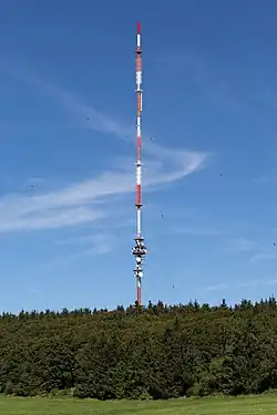 Auf dem Kreuzberg befindet sich seit 1951 der Sender Kreuzberg des Bayerischen Rundfunks. Sein abgespannter Stahlrohrmast wurde 1985 errichtet und 2016 von 207,5 m auf 227 m Höhe aufgestockt. Ausgestrahlt werden UKW-Rundfunk und verschiedene Fernsehprogramme; zudem wird der Mast von zahlreichen Funknetzbetreibern genutzt.