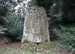 Am 8. Juli 1951[2] wurde auf Initiative von Forstamtsleiter Otto Korn[7] bei der Kreuzbuche eine Gedenkstätte für im Zweiten Weltkrieg gefallene Beschäftigte der Forstverwaltung eingeweiht. Das aus Spenden der Mitarbeiter des Forstamts finanzierte Denkmal besteht aus einem 2,50 Meter hohen Gedenkstein und einem 12 Meter hohes Holzkreuz, das aus einem 15 Meter langen und damals 344 Deutsche Mark teuren Eichenstamm gefertigt wurde.[2]