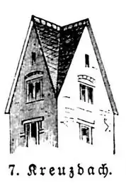 - ↑ Hans Koepf, Günther Binding: Bildwörterbuch der Architektur. Mit englischem, französischem, italienischem und spanischem Fachglossar (= Kröners Taschenausgabe. Bd. 194). 4., überarbeitete Auflage. Kröner, Stuttgart 2005, ISBN 3-520-19404-X (Digitalisat auf moodle.unifr.ch, abgerufen am 9. Mai 2024), S. 295: Kreuzdach, Kreuzgiebeldach.