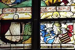 Das Wappen der Familie von Weworden (van Weuerden), ist ein nach rechts springender, silberner Hirsch mit goldenem Geweih, auf blauem Grund und auf dem Helm ein silberner Hirschkopf mit goldenem Geweih.[1] Das Wappen findet sich unten rechts im Kreuzigungsfenster.
