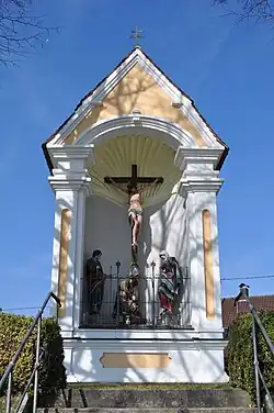 Die Kapelle birgt eine barocke Kreuzigungsgruppe, die um 1660 datiert wird.