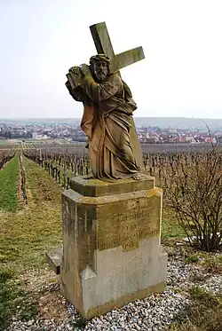 Mitten in den Weinbergen, am sogenannten Mönchsberg gelegen steht ein weiterer Kreuzschlepper. Er befindet sich auf einer Säule, die mit zwei Engelsköpfen und einer Girlande verziert ist. Erbaut wurde die Statue 1704. Die Jesusfigur aus Sandstein wird vom Denkmalpflegeamt als Denkmal unter der Nummer D-6-75-174-250 eingeordnet.[12]