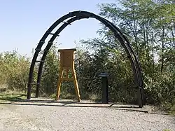 Der Gleitbogen an der 3. Station diente im Bergbau zum Streckenausbau. Durch seine Halbkreisform bietet er eine hohe Stabilität. Bei zu hoher Belastung ist der Bogen in der Lage nachzugeben. Die Profile schieben sich dann ineinander und werden nicht beschädigt.