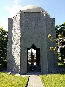 Zum Gedenken an die Opfer des Zweiten Weltkrieges wurden 1958 vier Granittafeln an den Außenwänden angebracht. Auf diesen stehen die Namen, das Geburts- und Todesjahr der Gefallenen, sowie das Land, in dem sie den Tod fanden. Außerdem als Rundum-Überschrift: „Den Toten – zum Gedächtnis – den Lebenden – zur Mahnung“.