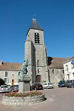 Kriegerdenkmal in Vert-le-Grand, dahinter die Kirche Saint-Germain