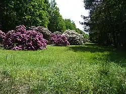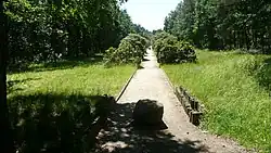 Mit dem Ende des Krieges besetzte die Rote Armee auch Königsbrück mit dem riesigen Truppenübungsplatz und den Kriegsgefangenenfriedhof. Die Übergabe des Areals wurde vom sowjetischen Kommandanten an der Stadt Königsbrück im Oktober 1949 durchgesetzt, da bis dahin die Gräber von den Königsbrücker Bürgern gepflegt und versorgt wurden. Die neuen Besatzer beachteten die Gräber der zaristischen russischen und ihrer eigenen Soldaten wenig. Offiziell konnte sich die Stadt Königsbrück die Instandhaltung und Pflege des Kriegsgefangenenfriedhofes nicht in vollem Umfang leisten, weil es dafür einfach keine finanziellen Mittel gab. Jedoch haben beherzte Bürger von Schmorkau und Königsbrück die Pflege übernommen und den Kriegsgefangenenfriedhof ansehnlich über die Zeit gebracht. Ehrungen auf dem Kriegsgefangenenfriedhof fanden keine mehr statt. Der Rat des Bezirkes Dresden, Abteilung Dorf- und Städteplanung, beauftragte am 2. Dezember 1958 die Stadt Königsbrück eine geplante Umgestaltung des Kriegsgefangenenfriedhofes auszuführen. Es sollte ein Ehrenhain entstehen. Dies umfasste eine Neubepflanzung und die Entfernung der Holzkreuze mit deren Namensschilder. Des Weiteren sollten die Gräber eingeebnet werden. Die Maßnahme wurde im Jahr 1959 beschlossen. Diese politische und verantwortungslose Umgestaltung der mit namentlichen 450 und vermutlichen über 600 zu ihrer letzten Ruhe liegenden Gefangenen aus zwei Weltkriegen sind diese ihrer Identität entzogenen und somit in die Anonymität versunken. Aber auch bei dieser Maßnahme reichten die finanziellen Mittel nicht. Durch die Einebnung der Gräber lassen sich nun die Grabstellen nicht mehr zuordnen.[1] In der Zwischenzeit wurde der Ehrenhain mit großer Mühe notdürftig instand gehalten. Vandalismus und Diebstahl von Schmuckelementen an den Grabdenkmalen bestätigen die vergessene Anlage, welches ein Schattendasein führt. So wurde das Georgskreuz vom Russen-Obelisk und der Palmenzweig des Franzosen-Steins abmontiert und gestohlen. In der Zeit wurde vom 18. bis 19. April 2017 wurde der Ehrenhain auf dem Gelände des ehemaligen sächsischen, deutschen, später sowjetischen Truppenübungsplatzes Königsbrück von Angehörigen der I. Inspektion der Offizierschule des Heeres aus Dresden gepflegt und gärtnerisch versorgt. Der Volksbund Deutsche Kriegsgräberfürsorge und der Bauhof der Gemeinde Neukirch unterstützten den freiwilligen Einsatz der zukünftigen Offiziere. Inzwischen hat der Geschichtsverein Truppenübungsplatz Königsbrück e.V. aus Königsbrück wichtige Informationstafeln aufgestellt und es wurden einige Bänke zum Verweilen und Nachdenken montiert.[2]