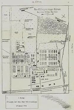 - ↑ Rudolf Hermanns: Ausgrabungen auf dem Gelände des Kriegsgefangenenlagers aus dem I. Weltkrieg ( des vom 4. März 2016 im Internet Archive) Info: Der Archivlink wurde automatisch eingesetzt und noch nicht geprüft. Bitte prüfe Original- und Archivlink gemäß Anleitung und entferne dann diesen Hinweis., in: Dülmener Heimatblätter, Heft 2/2000.