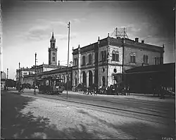 Zwischen 1841 und 1843 wurde an der Kriegsstraße östlich des Ettlinger Tores der erste Bahnhof Karlsruhes gebaut. In den Jahren 1884 und 1885 wurde er erweitert und umgebaut.[4] Südlich der Kriegsstraße und des Bahnhofs entstand die Südstadt, westlich der Ettlinger Straße die Südweststadt.