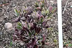 Eine Paeonia daurica subsp. mlokosewitschii im frühen Frühling