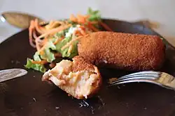 - ↑ In Deutschland werden Fleischkroketten bei der Fast-Food-Kette Kochlöffel mit verschiedenen Dips angeboten.