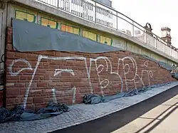 - ↑ Simone Höhl: Der 170.000 Euro teure Sandstein an der neuen Kronenbrücke ist bereits mit Graffiti besprüht. Badische Zeitung, 7. September 2018, abgerufen am 7. September 2018.