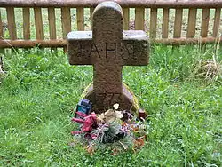 Das aus rotem Sandstein errichtete Hasenstabkreuz (Lage) im Kropfbachtal trägt die Initialen JAHst und die Jahreszahl 1773.