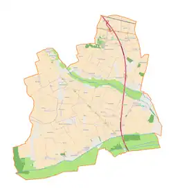 Der Ort liegt im Norden der Woiwodschaft. Die Kreisstadt Kutno liegt acht Kilometer nordwestlich. Nachbarorte sind Żakowice im Westen, Różanowice im Norden, Krzyżanówek im Osten, Rustów sowie Konary im Süden und Wały B im Südwesten. Südlich des Dorfs fließt die Ochnia, die in den Weichsel-Zufluss Bzura entwässert. Das Gebiet der Gemeinde ist eben und die Böden sind von bester Qualität (Index 1.1).[1]