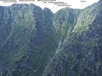 ▬ Über den Pass führt ein gelb markierter Wanderweg vom Tal Dolina Pięciu Stawów Polskich ins Tal Dolina Gąsienicowa.