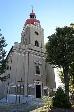 - Die römisch-katholische Kirche St. Bartholomäus (poln. Kościół św. Bartłomieja) wurde 1748 im barocken Stil errichtet. 1821 und 1836 brannte die Kirche nieder. 1906 erhielt der Kirchturm einen Zwiebelturm. Der Hauptaltar wurde 1908 errichtet. Die Orgel stammt aus dem Jahr 1909 von der Orgelfirma Schlag & Söhne aus Schweidnitz.[8] Der Kirchenbau steht seit 1954 unter Denkmalschutz.[9]