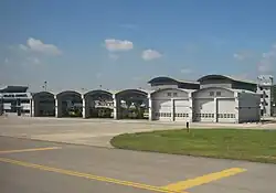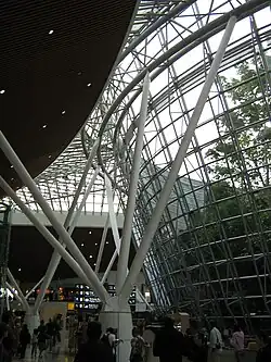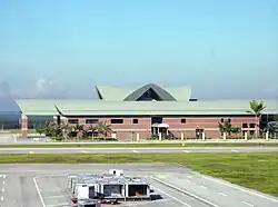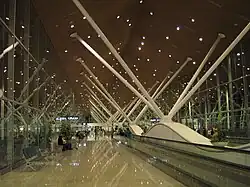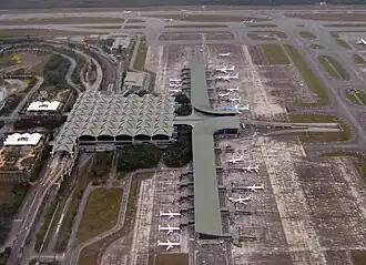 Das Hauptabfertigungsgebäude befindet sich zwischen den beiden Runways und hat im Grundriss eine rechteckige Form. Das Dach besteht aus 39 quadratischen Dacheinheiten, welche es ermöglichen, die Halle schnell und günstig auszubauen, indem weitere Gebäudeeinheiten angefügt werden.