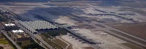 | Das Hauptterminalgebäude, im Hintergrund der Tower | |||