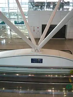 Im ganzen Gebäudeschlauch sind Fahrsteige, sogenannte Travellators, installiert, welche die Wege zu weit entfernten Flugsteigen zeitlich verkürzen.