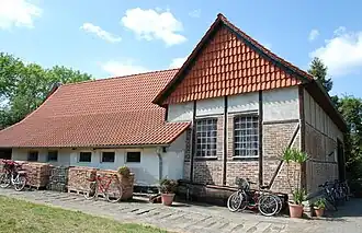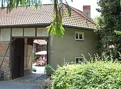 Als Standort für eine Wassermühle ist der Bereich seit dem 15. Jahrhundert belegt. Es handelte sich um eine Lehnsmühle des Klosters Huysburg. Die heutige Wassermühle ist als geschlossene Hofanlage in Fachwerkbauweise erhalten und stammt aus der zweiten Hälfte des 17. Jahrhunderts[1], andere Angaben nennen das 18. Jahrhundert.[2] 1783 erfolgten kleinere Umbauten. Es ist teilweise funktionsfähige Technik, die zum Teil noch aus der Bauzeit stammt, erhalten. So besteht ein oberschlächtiges Wasserrad mit einem Durchmesser von vier Metern. Erhalten sind auch Elevatoren, zwei Schrotgänge, ein Walzenstuhl, ein Askaniasichter, eine Schälmaschine, eine Windfege sowie eine Mahl- und Aufschließmaschine des Herstellers Mühlenbau Nossen. Sowohl das Wasserrad als auch der Schrotgang mit einem Annahmeelevator sind funktionsbereit.