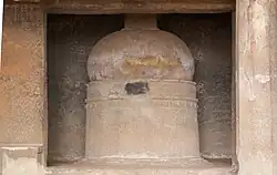Neben der Haupthalle befindet sich eine weitere Höhle mit einem (stark beschädigten) Wächterelefanten links des Eingangs.