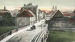 Blick über die Mistelbachbrücke in Richtung Innenstadt (um 1910)