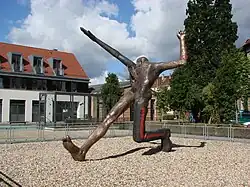 Bronzeskulptur Der Jahrhundertschritt von Wolfgang Mattheuer an ihrem früheren Standort, dem Hof des Kutschstalls in Potsdam