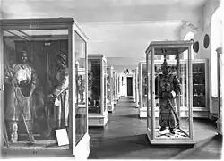 Ethnologisch interessante Objekte gelangten ab 1850 in steigendem Mass nach St. Gallen – dank der weitreichenden Geschäftsverbindungen der Stadt, aber auch vielseitiger, diplomatischer und kultureller Auslandsbeziehungen. Auch hier bildete der Stickereiboom den wesentlichen Hintergrund. Die Sammlung hatte Prestigecharakter, aber auch wirtschaftlichen Nutzen – z. B. für die Ausbildung von Kaufleuten. Zudem befriedigte sie das Interesse an fernen, exotischen Welten, das um 1900 überall gross war.[1] Zum Träger des neuen Museumszweiges wurde die Ostschweizerische Geographisch-Commercielle Gesellschaft, gegründet 1878. Sie übernahm die völkerkundlichen Objekte des Historischen Vereins und legte eine eigene ethnologische Sammlung an, die zunächst im Westflügel der Kantonsschule untergebracht war und 1899 ins Stadthaus der Ortsbürgergemeinde gezügelt wurde. 1917 ging die Sammlung als Schenkung an die Ortsbürgergemeinde.[2]