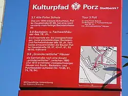 - ↑ Stadt Köln (Hrsg.): Kulturpfade Stadtbezirk 7 (Porz). Nr. 1.1. Köln, S. 6 (1990er).