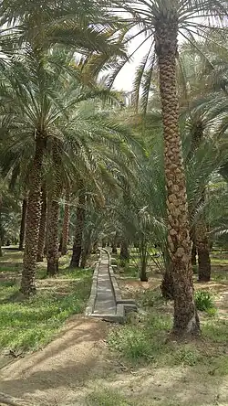 - (16) Oase von Mutaredh. Hier befindet sich unter anderem eine Palastanlage im traditionellen Stil, allerdings erst in der Mitte des 20. Jahrhunderts mit Zement gebaut.[3]