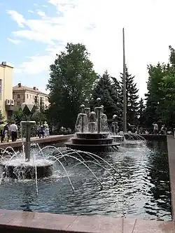 - ↑ LAMAKH VALERII. In: archive-uu.com. 8. April 2022, abgerufen am 21. April 2022 (englisch, Wandmosaik „Jugend“ in der Lobby, weitere finden sich etwa bei Google Maps).