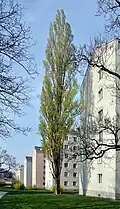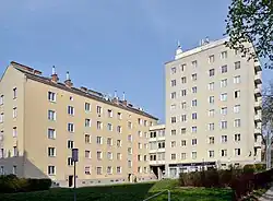 Bereits zu Meidling gehörig, entstand hier 1957–1959 eine große städtische Wohnhausanlage zwischen Kundratstraße, Köglergasse, Karplusgasse und Unter-Meidlinger Straße nach Plänen der Architekten Friedrich Euler, Herbert Thurner, Wilhelm Gehrke, Gerhard Kolbe, Karl Maria Lang und Maria Petter. Die Kunstwerke innerhalb der Anlage sind mittlerweile entweder in schlechtem Zustand (Plastiken Zwei Ruhende von Hilde Uray, Liegende weibliche Figur von Georg Zauner, Kinderrutsche mit Becken von Rudolf Friedl) oder bereits verschwunden (Schreitende männliche Figur von Josef Pillhofer, Mosaik Windrose von Arnulf Neuwirth).