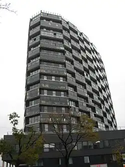Am östlichen Anfang der Kundratstraße befindet sich an der nördlichen Straßenseite gegenüber dem Martin-Luther-King-Park das 2007 errichtete Hochhaus K6. Dieses bildet einen weithin sichtbaren städtebaulichen Akzent zwischen dem Matzleinsdorfer Hochhaus und den Twin Towers auf dem Wienerberg. Es wurde von den Architekten Bettina Götz und Richard Manahl und dem Architekturbüro Neumann projektiert. Auf einem dreigeschoßigen rechteckigen Sockelbauwerk, in dem sich Geschäfte und Büros befinden, erhebt sich das eigentliche Hochhaus. Es ist ellipsenförmig angelegt und misst 70 Meter in der Längs- und 26 Meter in der Querachse. Der elliptische Bauteil umfasst ausschließlich Wohnungen, wobei rundum, geschoßweise versetzt, verglaste Loggien angeordnet sind.