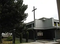 Diese Holzmontagekirche von Ottokar Uhl aus dem Jahr 1967 war ursprünglich der Kreuzerhöhung geweiht und folglich als Heilig-Kreuz-Kirche bekannt. Sie wurde nach einer neuen Konstruktionsart mit Holzleimbindern hergestellt. Als Notkirche sollte sie mobil sein und den wechselnden Bedürfnissen der Seelsorge gerecht werden. 1970 wurde die Kirche um 90 Grad gedreht. 1988 erfolgte die neue Weihe an die Heilige Katharina von Siena. Aus dem einstigen Provisorium ist mittlerweile eine Dauerlösung geworden, da in der Kundratstraße tausende Wohnungen entstanden, deren Bewohner von der Pfarrkirche betreut werden. Neben der Kirche entstand ein Pfarrkindergarten, dessen zur Kirche gewandte Seite abgerundet ist. Die Kirche steht unter Denkmalschutz.