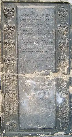 Grabstein von Kuno von Alvensleben an der Außenwand des Chores der Schlosskirche in Wittenberg