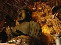 Die Nara-Zeit wurde nach Japans erster ständiger Herrschaftsresidenz Nara benannt. Wie schon in den vergangenen Jahrhunderten blieb der chinesische Einfluss weiterhin stark, auch der Aufbau Naras ist der chinesischen Metropole Chang-an nachempfunden. Außerdem stand die Nara-Zeit, wie schon zuvor die Asuka-Zeit, ganz im Zeichen des Tempelbaus und der dazugehörigen buddhistischen Reliquien, nach dem Vorbild der Kunst der zu der Zeit in China herrschenden Sui bzw. Tang-Dynastie. Die großen Tempel wurden zu Zentren der religiösen Kunst. Der zwischen 745 und 752 erbaute Tōdai-ji wurde als Zentrale eines Netzwerks von Tempeln in jeder Provinz errichtet.