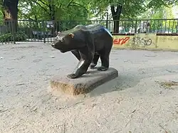 Erwin Damerow Bär 303 Volkspark, Berlin-Prenzlauer Berg, unterhalb des großen Plateau (Lage) Tierplastik Kunststein 1970 Bezirksamt Pankow, Amt für Umwelt und Natur