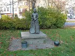 Katharina Szelinski-Singer Modell des Trümmerfrau-Denkmals 5 Albertinenstraße 20–23, Berlin-Weißensee, Parkanlage der Stephanus-Stiftung (Lage) Skulptur Muschelkalk 1955 (Original) H ca. 70 cm Katharina Szelinski-Singer (Leihgabe an Stephanus-Stiftung)
