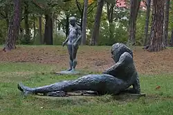 Sabine Teubner Ruhender Mann, stehendes Mädchen 69 Bürgerpark, Berlin-Pankow Plastik / Figurengruppe Bronze 1989 / 1997 Bezirksamt Pankow, Amt für Umwelt und Natur