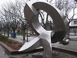 Großplastik[8] | Stahl auf niedrigem Betonsockel, 1965 | Herbert Press | Pichelsdorfer Straße 63, im Hof des Einkaufszentrums (Wilhelmstadt); rund 4 Meter hoch[10] | 52° 31′ 11,2″ N, 13° 11′ 51″ O |