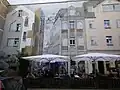 Frank Hüller (* 1961) | In der Anbringung auf einer Platte in der Ecksituation eines 1980er Neubaus ist die Figur durchaus mit den rund 20 Jahre älteren Plastiken von Lothar Sell am Moritzzwinger vergleichbar. Inhaltlich unterscheidet sich die nach der Wende entstandene Figur deutlich vom volkstümlichen Fassadenschmuck der frühen 1980er Jahre. Zudem arbeitet der "ewige Geheimdienstmann" genau gegenüber jenem Café, das in den Zeiten der zu Ende gehenden DDR ein Unruheherd war. | |