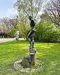 Bronzeskulptur einer schwimmenden Frau (Okeanide), ursprünglich stand das Podest in einem Wasserbecken. Ankauf durch die SAGA.