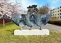 Bronze-Relief, das acht Vögel zeigt. Ankauf im Rahmen von „Kunst am Bau“.