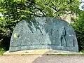 Bernd Stöcker | Der Freudensprung Matthias-Claudius-Denkmal, Geschenk der Claudius-Gesellschaft an Bezirk, bürgerliche Denkmalkultur |