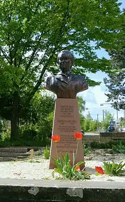 d | s | NN | 2014 | Gabriela Mistral, Bronze, Sandstein. Gegossen von der Gießerei Fundición El Progreso der Familie Rojas Velozo in Santiago de Chile. | Stuttgart-Süd, Santiago-de-Chile-Platz |