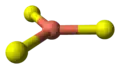 | Stäbchenmodell von Covellin | trigonal planare Koordination des Kupfers |