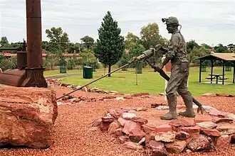 Statue eines Bergarbeiters mit Bohrgerätschafen im historischen Kupferbergbaugebiet von Cobar im dortigen Miners Heritage Park