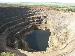 Ein mit Wasser gefüllter Kupfertagebau bei Kapunda