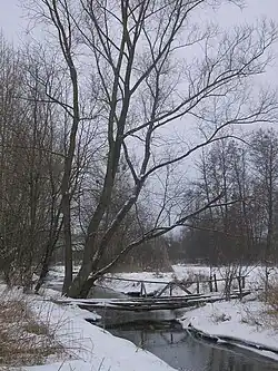 Eine Fußgängerbrücke über die Kurówka. | ||