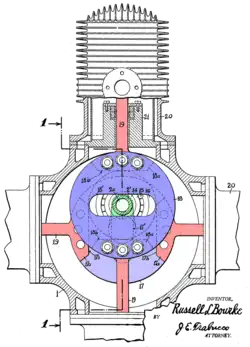 - ↑ Patent US2122677A: Internal combustion engine. Angemeldet am 12. Mai 1936, veröffentlicht am 5. Juli 1938, Erfinder: Russell L. Bourke.